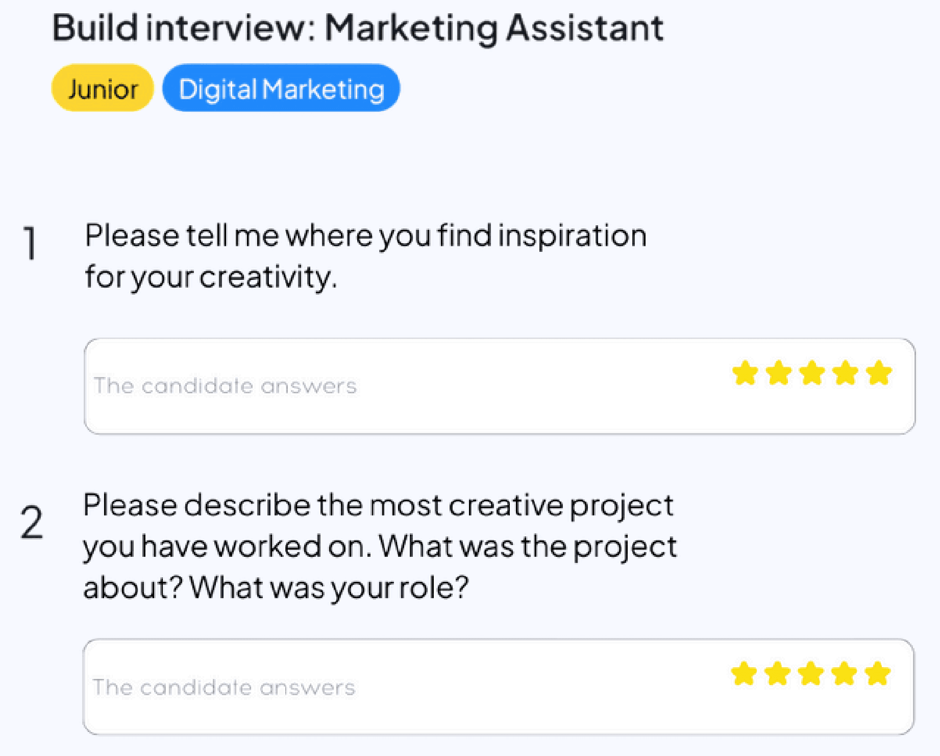 - Swift collaboration between recruiters and hiring managers. You can easily create and share interview guides with everyone involved.